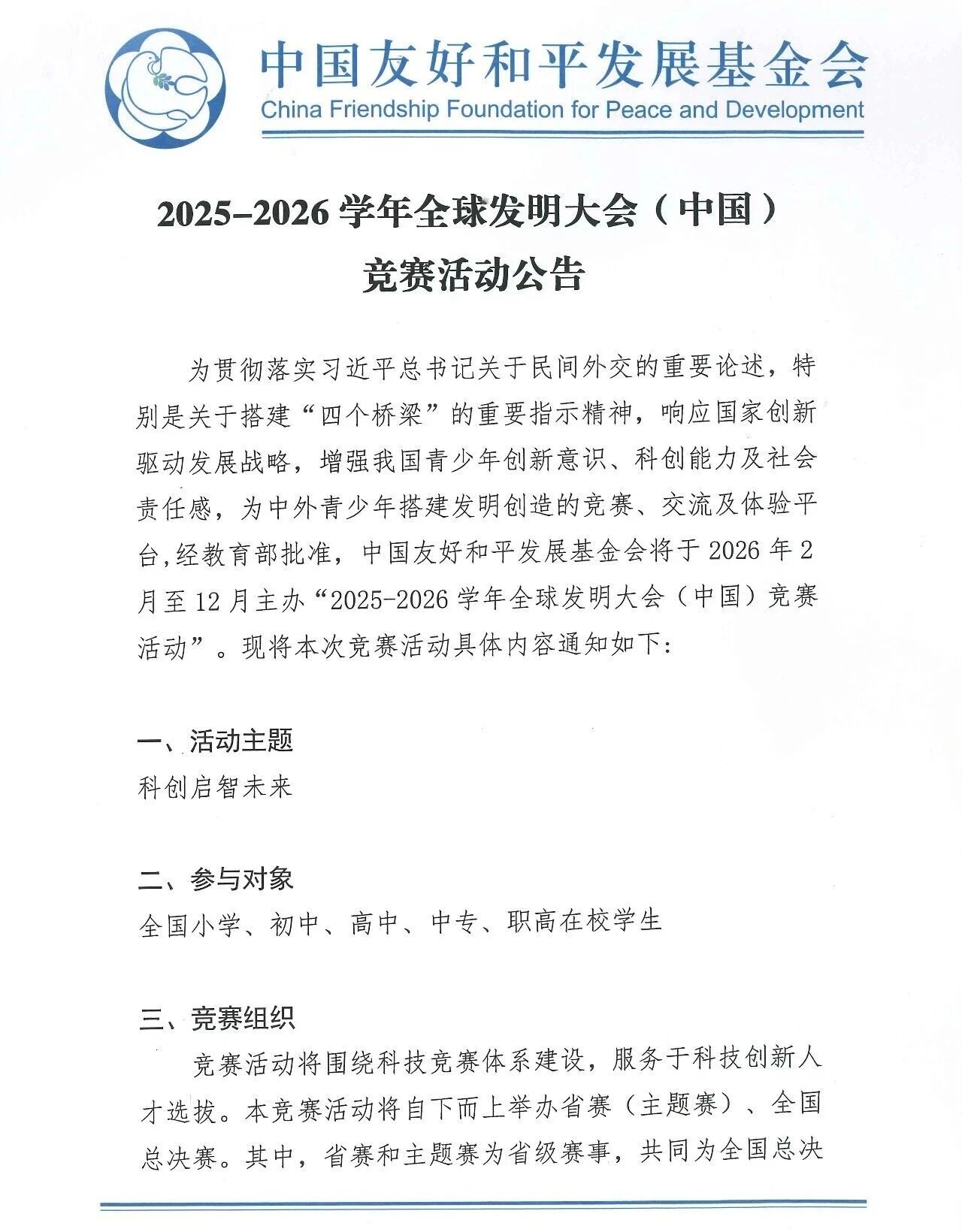 赛事通知 | 2025-2026学年全球发明大会(中国)竞赛活动公告